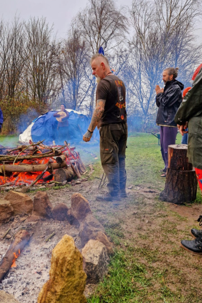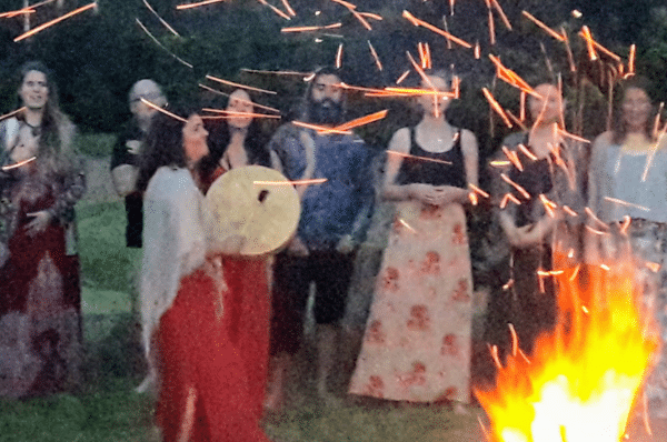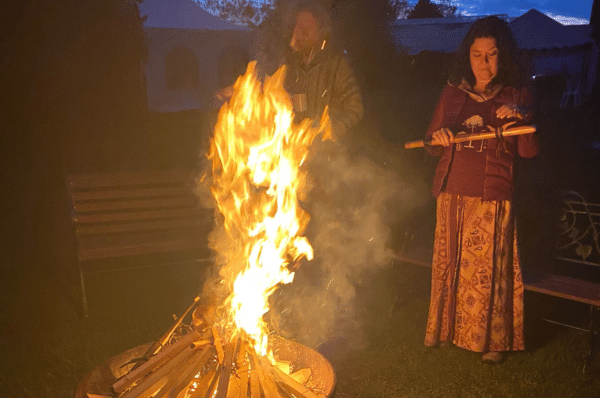 During the summer I was fireman at the Sweat Lodge in the grounds of Osho Leela. The Sweat Lodge was facilitated by two Shaman, Ranjana and Tarisha with great love and awareness. I was helped at the fire by my friend Mel, together we collected the logs and gathered the rocks. We laid the fire a big cradle in line with entrance of SL. The participants were led in some beautiful rituals that connected us all. Then they all placed a rock on the fire, and we lit the fire, a truly magical moment. After two or more hours the rocks were red hot. When the Shaman were ready hot rocks were passed into the lodge one by one. what an experience for us outside tending the fire and rocks. Thank you.